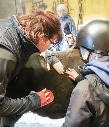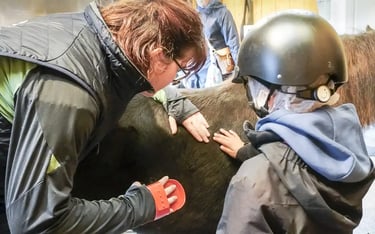 Activité “complicité en duo” choisissez un poney et préparez le en duo (brossage, massages...)